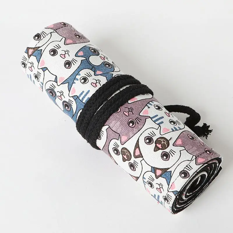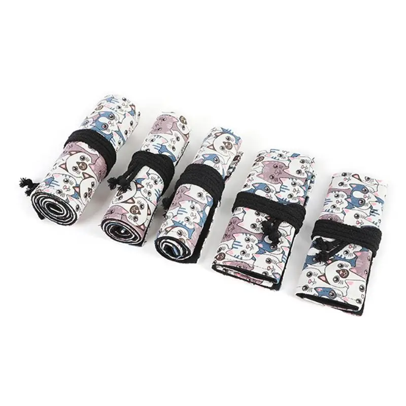 1224364872 отверстия холст школьный пенал Чехол Roll Up Карандаш Че...