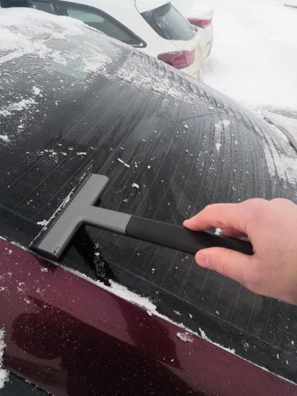 отличный скребок, с резиновым наконечником.правда для чистки льда не подходит. для снега слишком долго им чистить, щеткой быстрее, я использую как водосгон. с этим отлично справляется. доставка 22 дня, трек отслеживается полностью. рекомендую продавца и товар. качество отличное. ничего не люфтит, не скрипит.