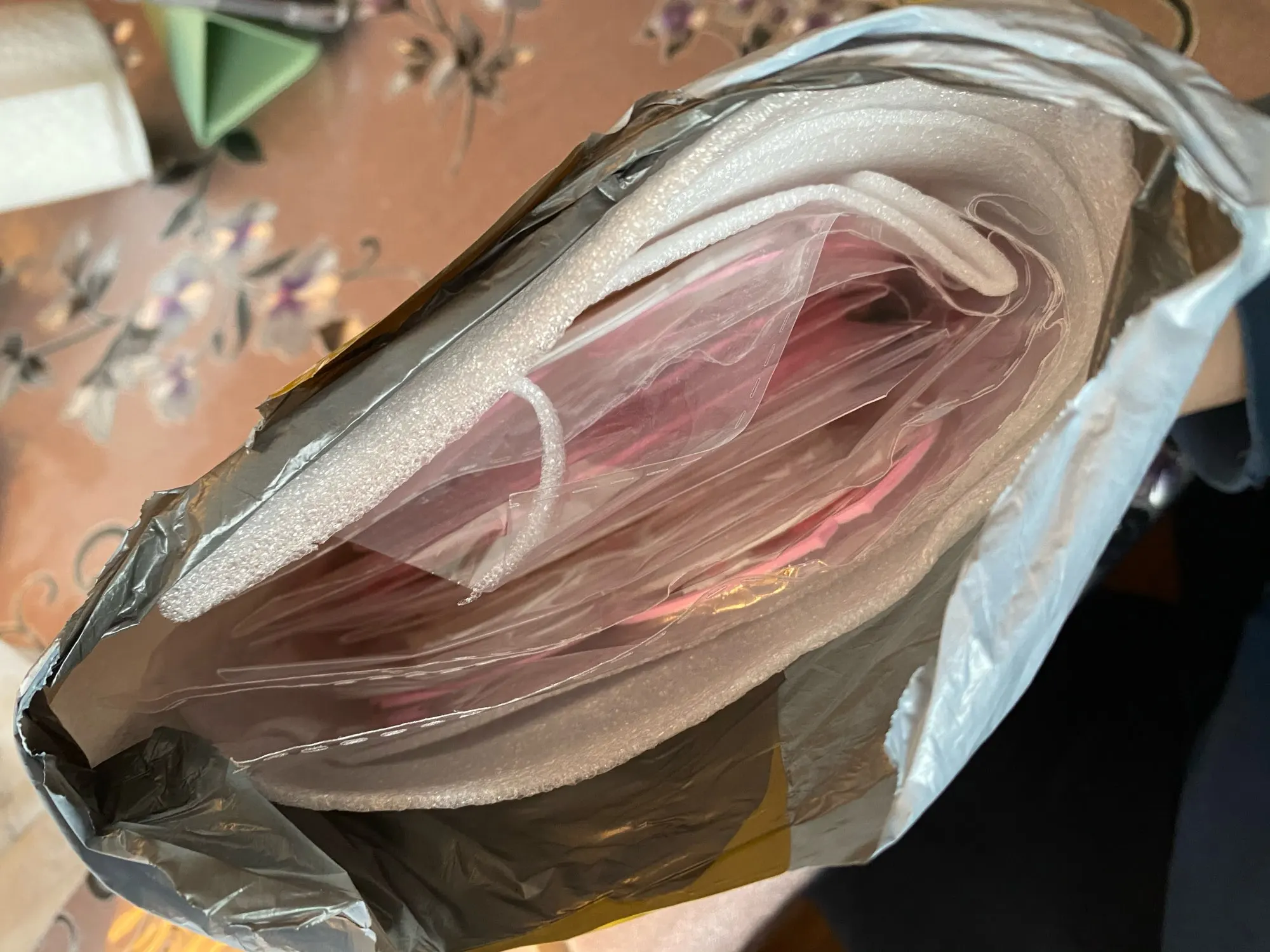 Товар был доставлен в целости и сохранности после 1 месяца. Небольшой запах резины, но он очень милый! Приятный на ощупь, не скользит, приличный размер. Проверит термостойкость позже.