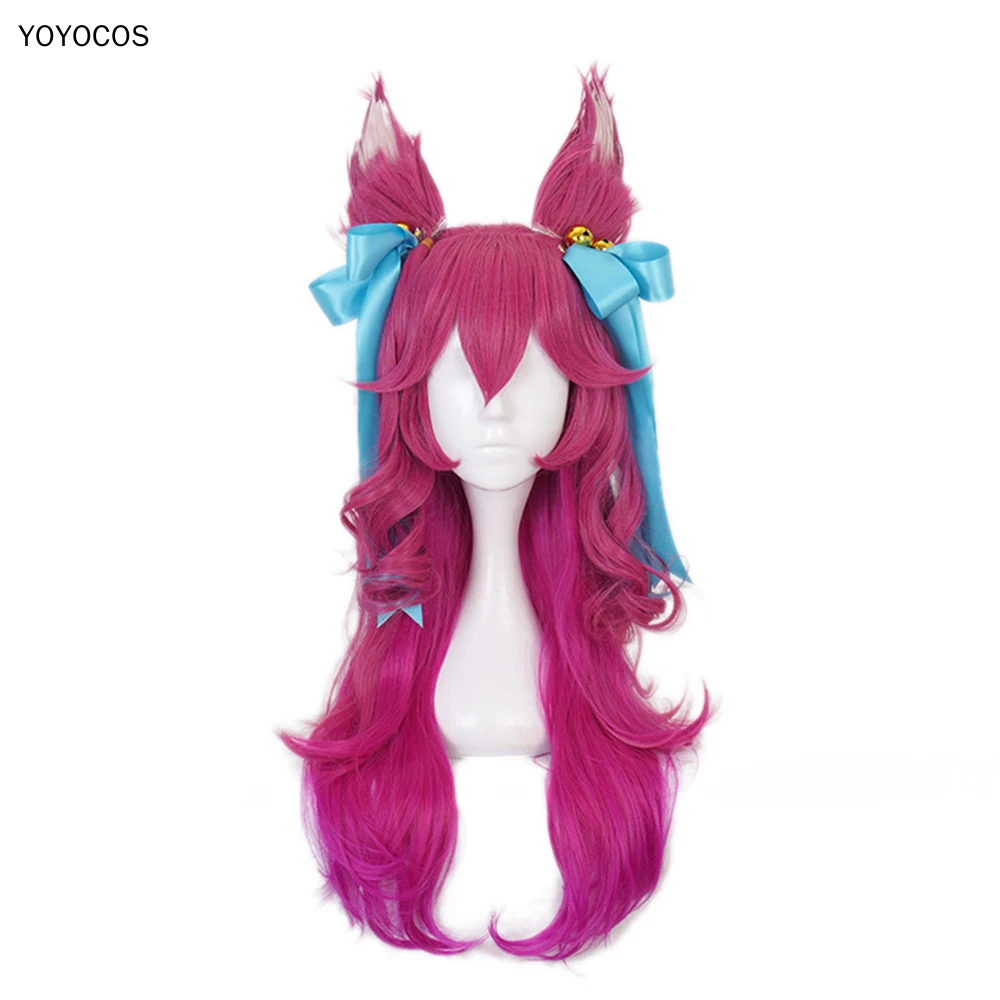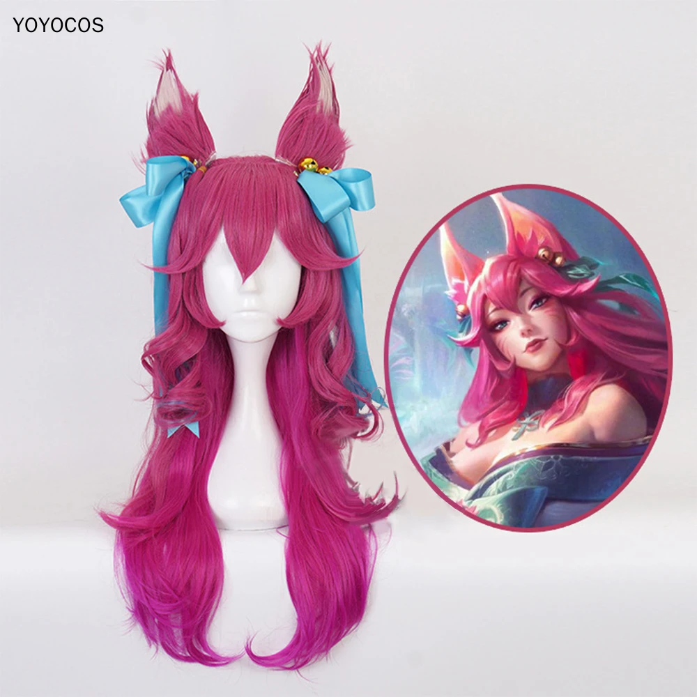 Ahri длинный парик с соблазнительными кошачьими ушками, Косплэй парик с надписью LOL Game Дух цветок League of Legends парика, устойчивая к высоким температурам синтетические волосы Хэллоуин Вечерние