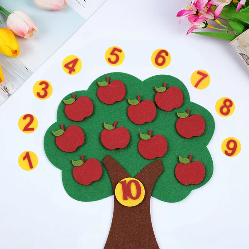 Детские игрушки сочетание яблока цифровой обучающий нетканый пазл математическая игрушка креативная развивающая игрушка для детского сада