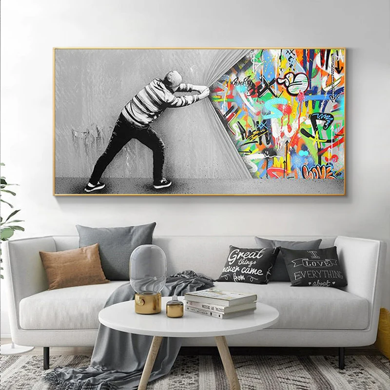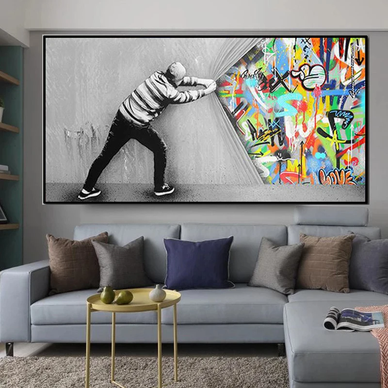 Уличное искусство Бэнкси Граффити настенное искусство за занавеской холст картины Куадрос настенные картины для домашнего декора (без рамки)