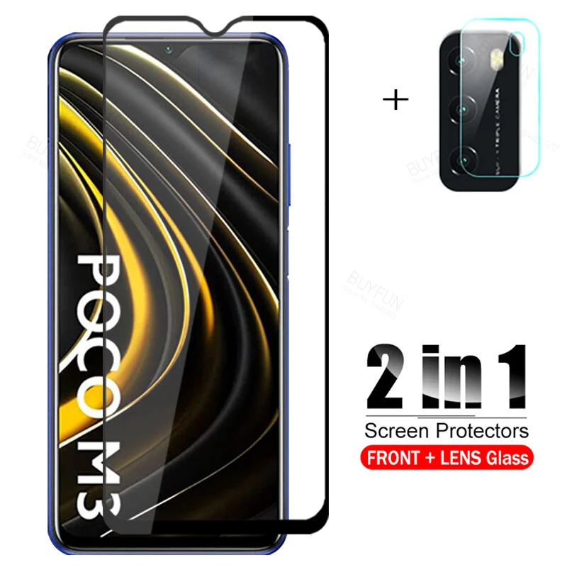 2 в 1 закаленное стекло для Xiaomi POCO M3 стекло для объектива камеры защитное стекло на Xiami POCOM3 POKO M 3 POCCO 3M защитная Пленка чехол