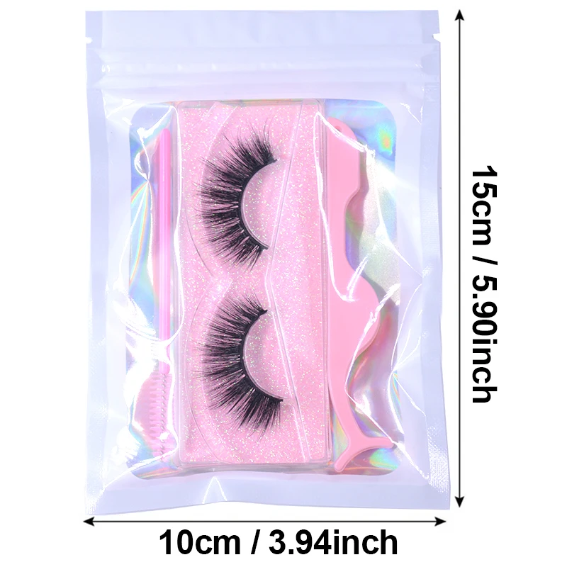 100 шт., оптовая продажа, пакеты для упаковки накладных ресниц с замком, красивые пустые 3D пакеты для упаковки ресниц навалом с логотипом на заказ