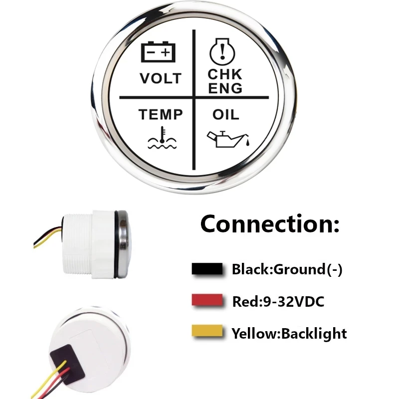 Фиксирующий Размер: 52 мм (2 '') с указанием диапазона: вольт, контрольный двигатель, температура воды, сигнализация давления масла Рабочее напряжение: 9-32 В и подходит для 12 В ~ 24 В Подсветка: красный режим работы: ЖК-дисплей, шаговый двигатель