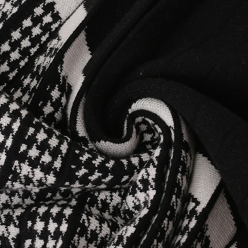 Длинная вязаная женская плиссированная клетчатая юбка, Осень-зима, плотная теплая трапециевидная юбка, шикарная вязаная юбка-свитер для женщин