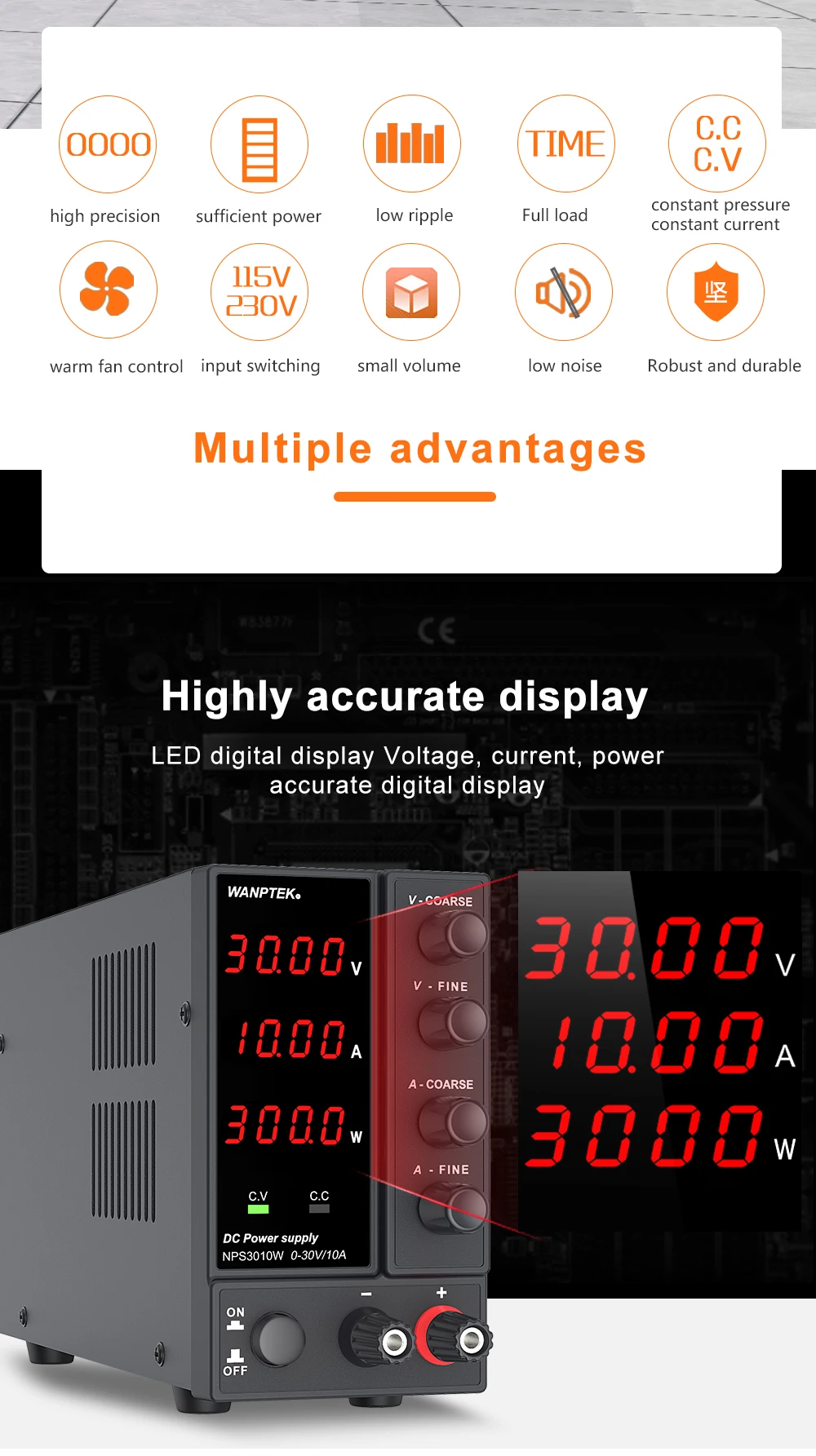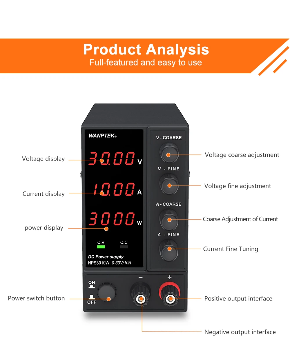 Лабораторный Регулируемый источник питания Wanptek постоянного тока 30 в 10 А, лабораторный Регулируемый 60 в 5 А, регулятор напряжения, стабилизатор, импульсный источник питания
