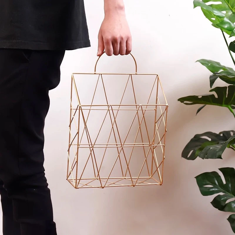 Роскошная металлическая корзина для хранения в скандинавском стиле, декоративная полка для газет, настенная книжная полка, мебель для ванной комнаты, товары для дома и офиса