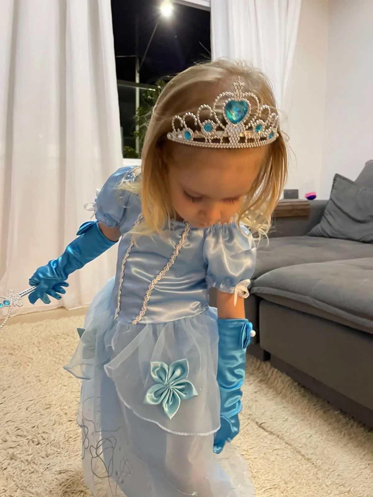 Платье очень красивое, хорошо сделано. С застежкой-молнией сзади, мягкое закрытие, хорошее шитье, очень красивые и хорошо сшитые перчатки, качество кружевных волос, волшебная палочка и корона, очень хорошо сделаны и хорошего качества. Я очень доволен и рекомендую.