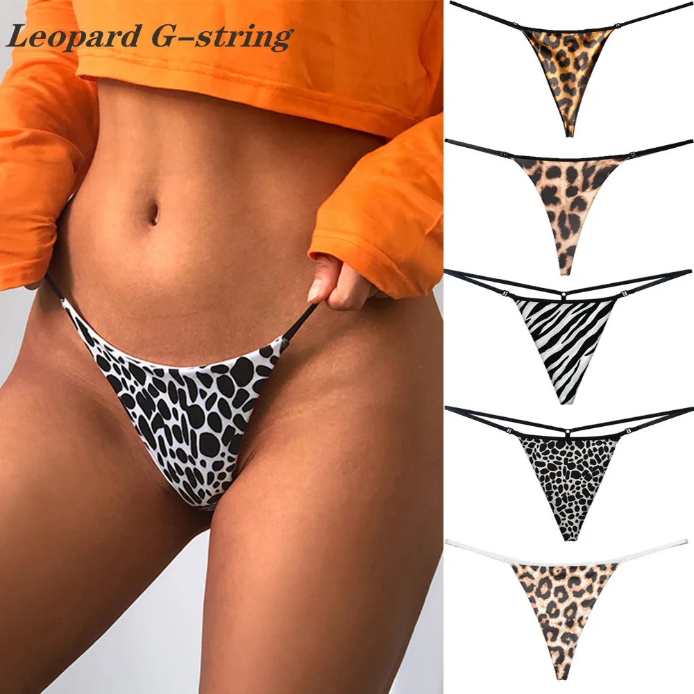 Трусики-танга женские с леопардовым принтом зебры, двухсторонние Т-...