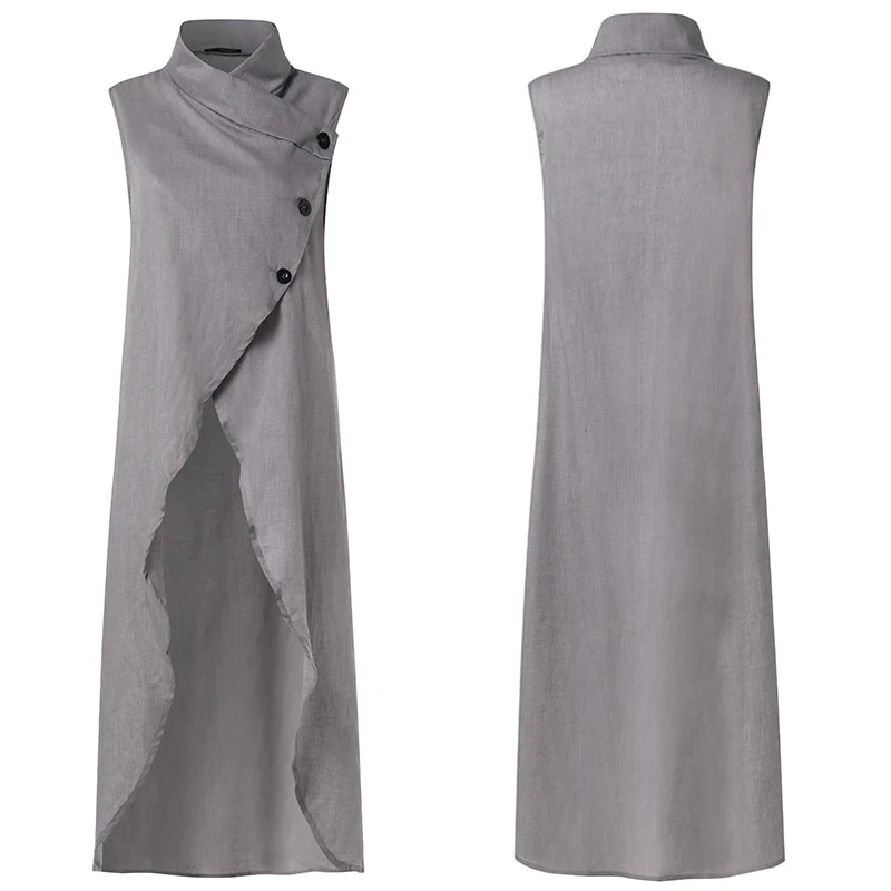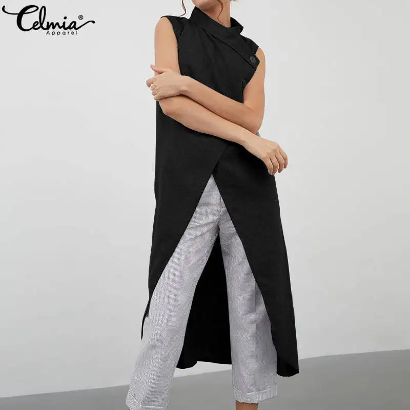 Модные женские платья без рукавов Блузка Celmia Асимметричный Длинные рубашки 2021 летние пуговицы повседневные свободные Разделение блузки размера плюс, топы