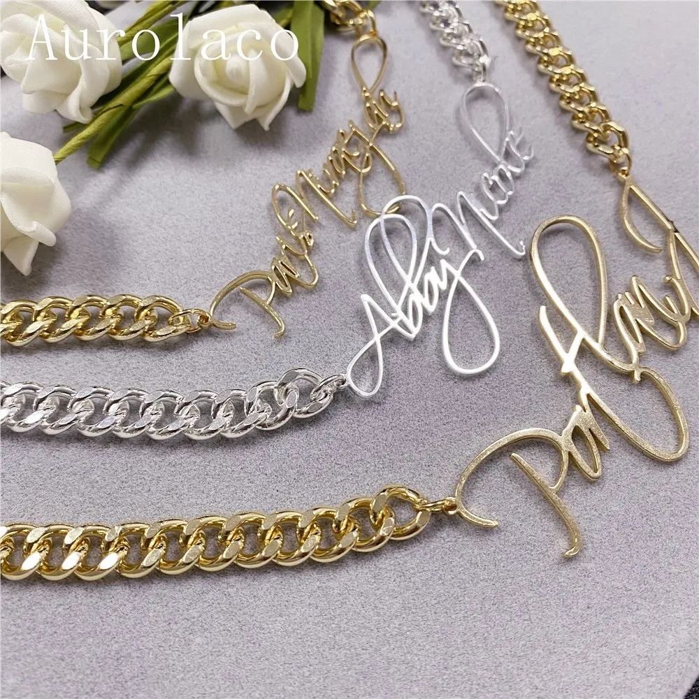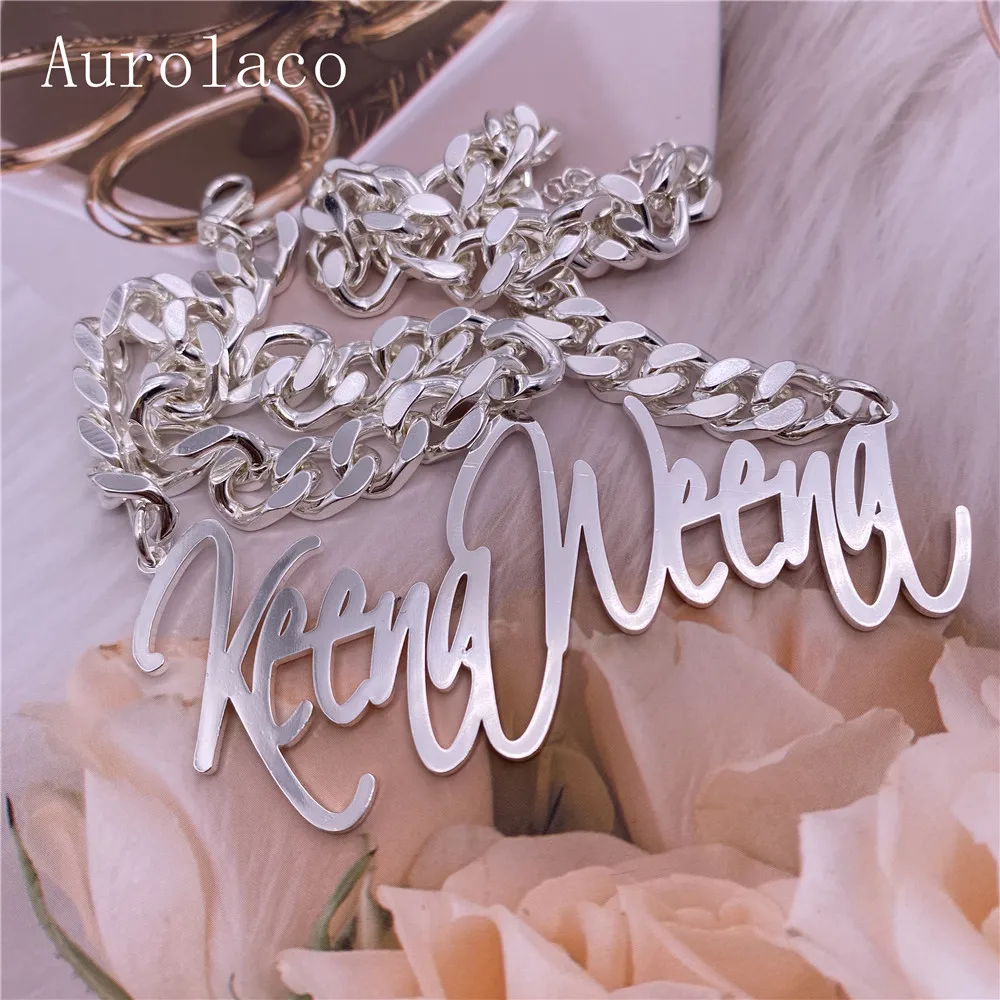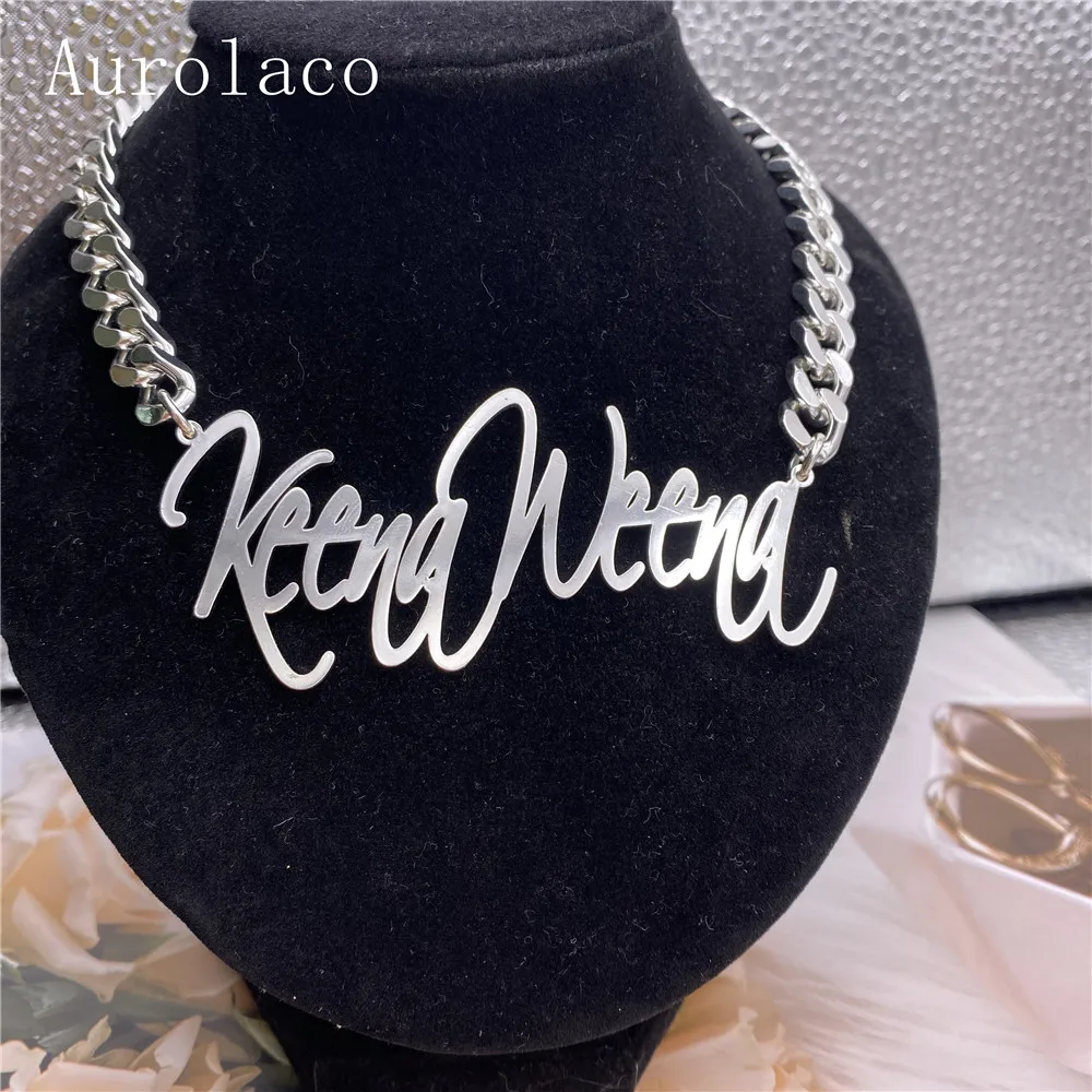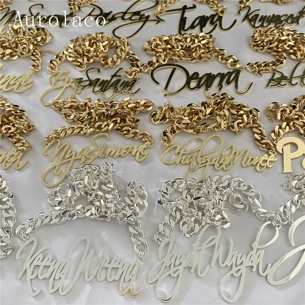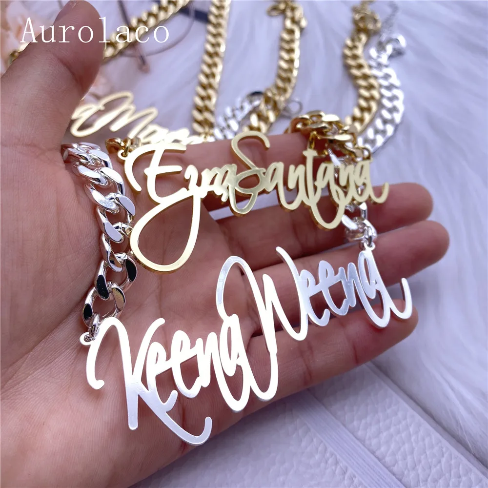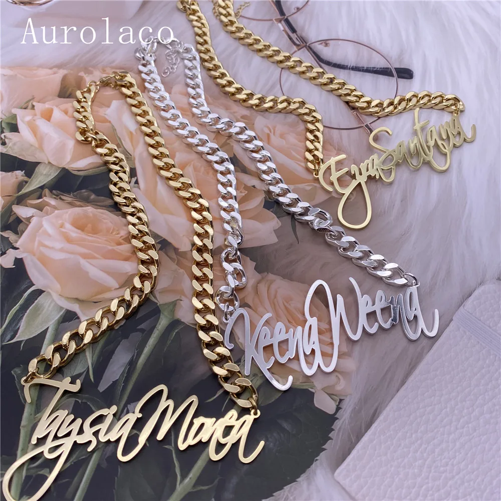 Ожерелье AurolaCo с именем на заказ, кубинская цепочка 8 мм, ожерелье с индивидуальным кулоном из нержавеющей стали с надписью, женские подарки