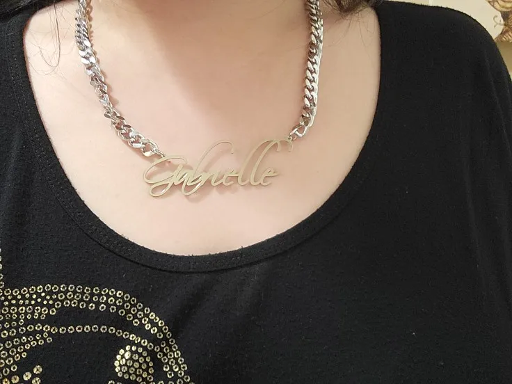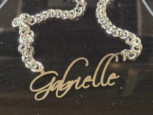 I should have chosen a more legible font. Necklace is too thick and heavy. The name plate is very light, wish material was heavier to balance weight