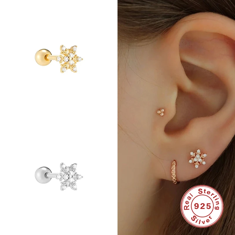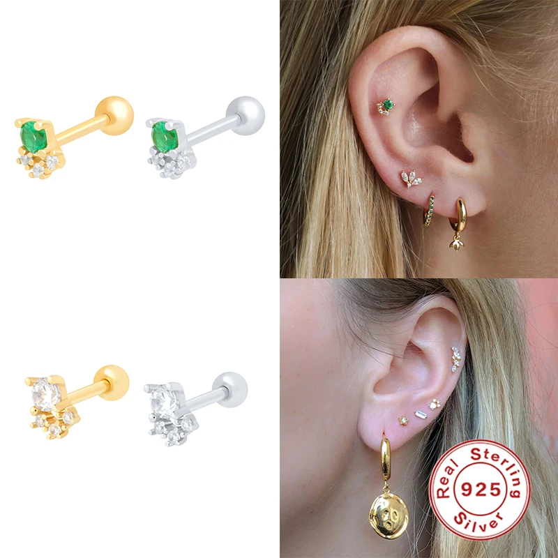 Женские серьги-гвоздики с циркониевой хрящевой пряжкой, ювелирные изделия, 1 шт., 925 пробы, Серебряный пирсинг