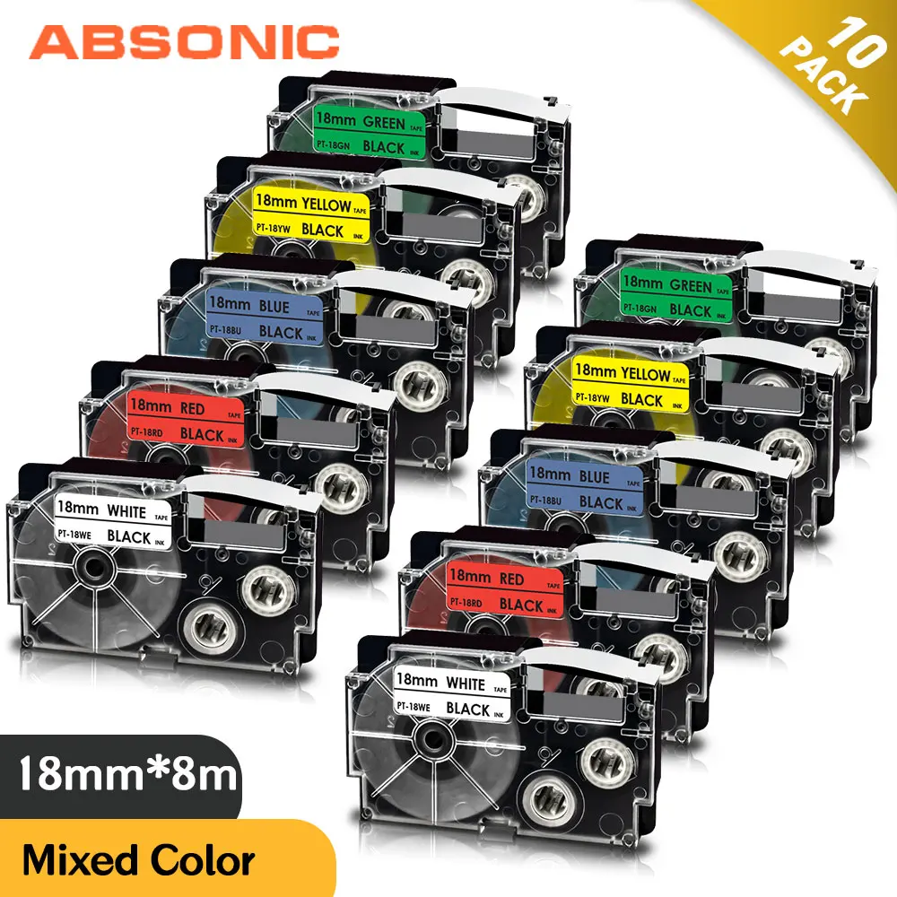 10PK разноцветные этикетки для CASIO XR-18WE XR-18RD XR-18BU XR-18YW XR-18GN этикетка лента 18 мм для CASIO KL-130 KL-120 KL-430 этикетка