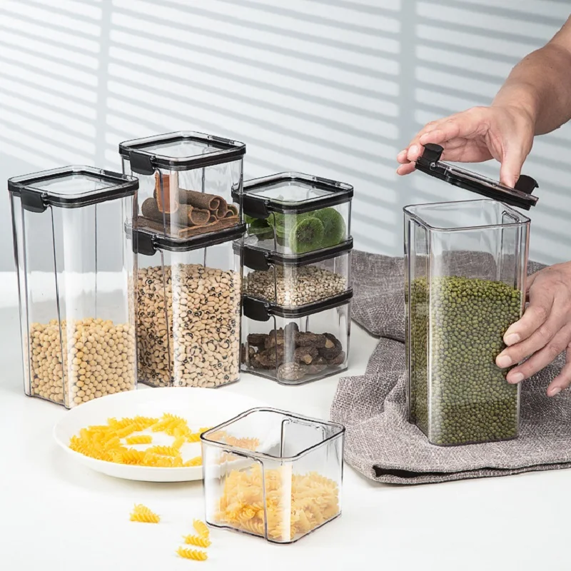 Пластиковые герметичные банки WBBOOMING, 4 разных емкости, кухонный ящик для хранения, прозрачный контейнер для пищевых продуктов, новый прозрачный контейнер для сохранения свежести
