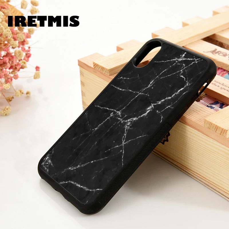Чехол-накладка Iretmis для iPhone 7, 8 Plus, X, Xs, 11, 12 MINI Pro Max, XR, 5, 5S, SE, 6, 6S, силикон, ТПУ, черный и белый мрамор
