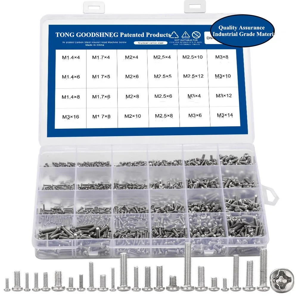 Углерода Сталь машина ассортимент винтов комплект самонарезающие винты с круглой головкой набор винтов для ноутбука M1.4 M1.7 M2 M2.5 M3 оборудования