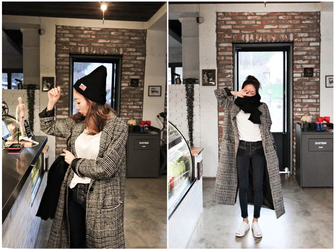 Осенне-зимний кашемировый Тренч, женское длинное повседневное клетчатое пальто, плотное теплое шерстяное пальто, куртки с пуговицами и карманами, верхняя одежда