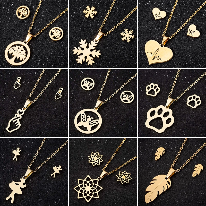 Женский комплект украшений из нержавеющей стали, ожерелье и серьги в форме снежинки, с изображением сердечного ритма и лепестков, 2021