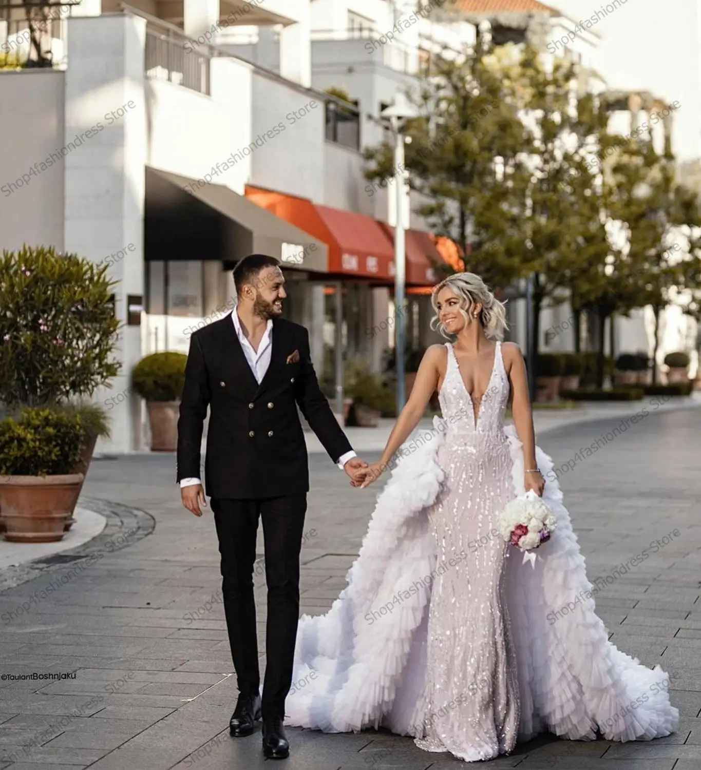 Блестящие Свадебные платья с бисером и юбкой-годе, со шлейфом из пышной тюлевой ткани, Роскошные свадебные платья со стразами без рукавов, индивидуальный пошив