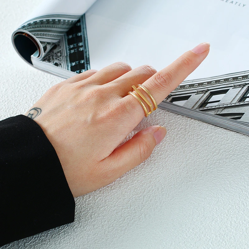 Многослойные перстни Vnox премиум для женщин ювелирные изделия для вечевечерние, золотистого цвета геометрические шикарные из нержавеющей стали подарки на день рождения для нее