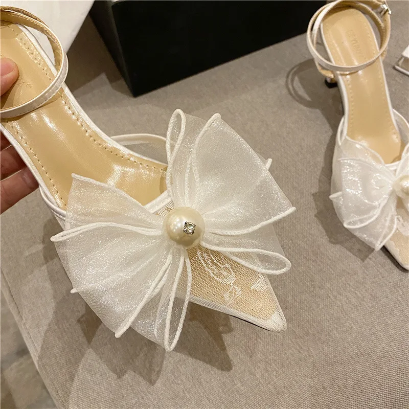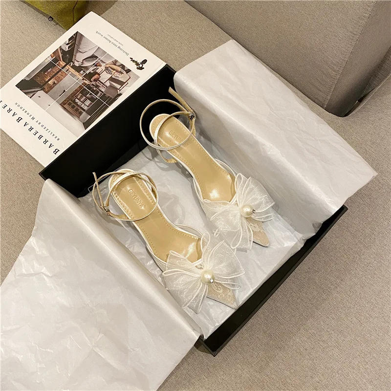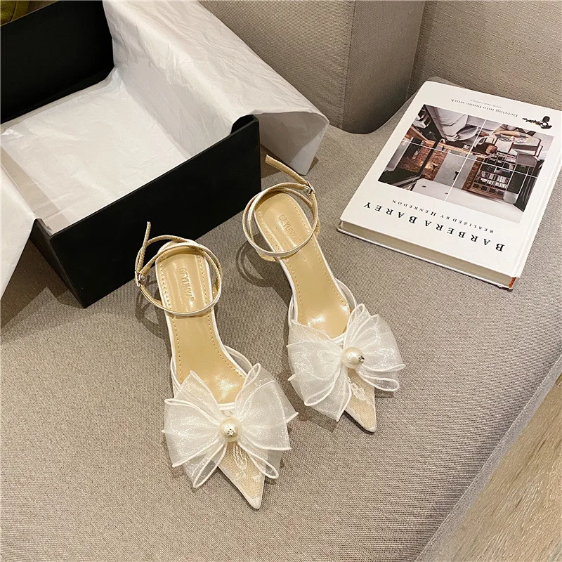 LTARTA2021 г.; Женские модные пикантные босоножки; Распродажа; Туфли с острым носком на высоком каблуке-шпильке с сеткой и жемчугом; JXQ-777-8 с бантом и кружевом