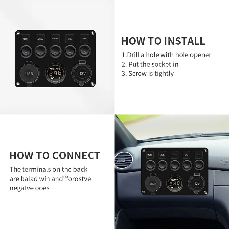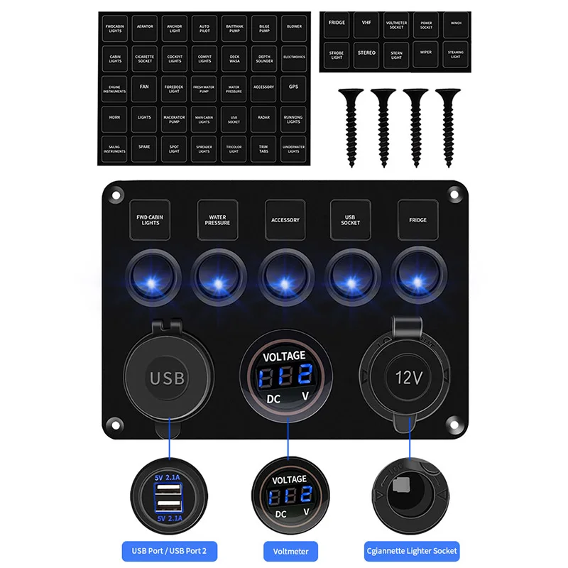 Светодиодная панель переключения с двойным USB-портом 12 В, цифровой вольтметр, переключатели управления для морского автомобиля, лодки, Автодома, кемпера, автофургона, аксессуары