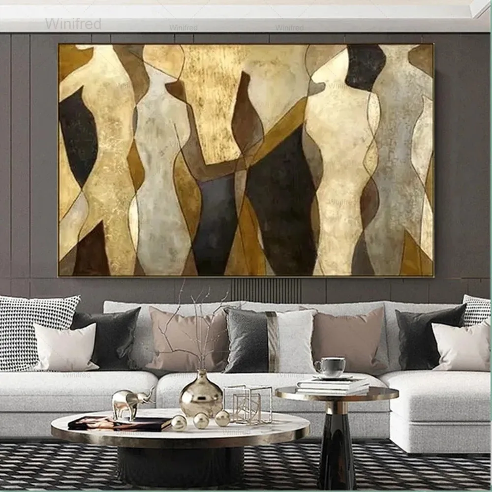 Лучшая ручная роспись, палитра золотых цветов, Современная картина ...