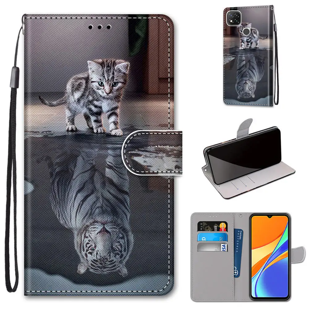 Animal Cat Flower pattern Wallet Flip Case For Xiomi Redmi note 9