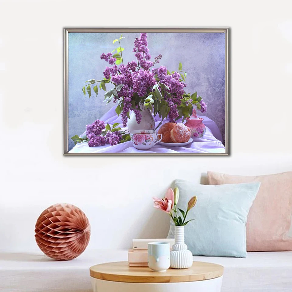 Алмазная живопись, вышивка крестиком в виде сиреневого цветка 5D, м...