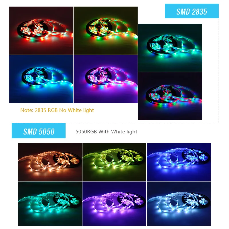 Если вы хотите, чтобы светодиодный rgb-лента носила много разных цветов,Включая также белый, Теплый белый или желтый Одноцветный, пожалуйста, покупайте5050 RGB светодиодный полоски