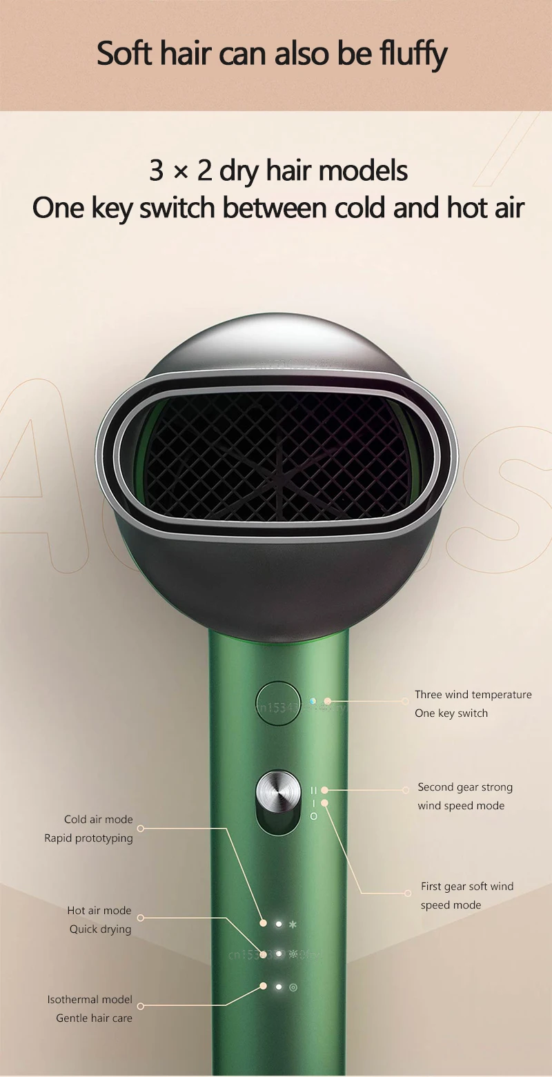 Быстрое высыхание и густые волосы занимают всего 5 минутНизкочастотный шумоподавляющий высокоскоростной двигатель