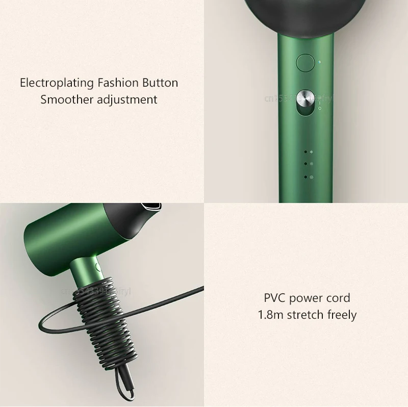 Интеллектуальный контроль постоянной температуры NTCСвободное переключение между холодным и горячим воздухомБыстросохнущий вид 1800 ВтВысокая концентрация отрицательных ионов для уходаДвухслойная Магнитная всасывающая насадка против ожоговДвойной контроль температуры