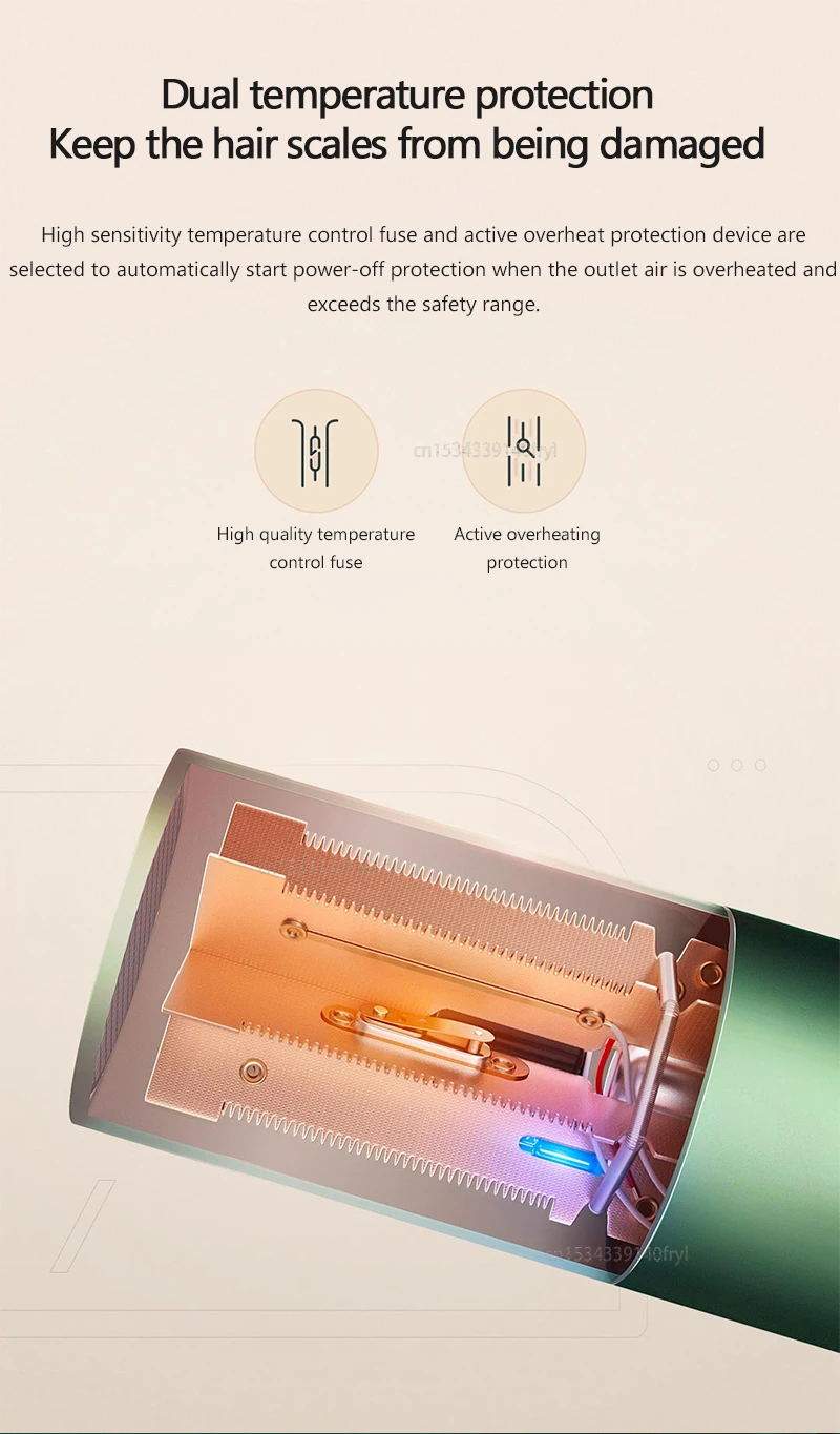 Защитите чешую от повреждения волосВысокочувствительный предохранитель для контроля температуры и устройство активной защиты от перегрева выбраны дляАвтоматический запуск защиты от отключения питания при перегреве выпускного воздуха и превышении диапазона безопасности.Предохранитель для контроля температуры высокого качестваЗащита от активного перегрева