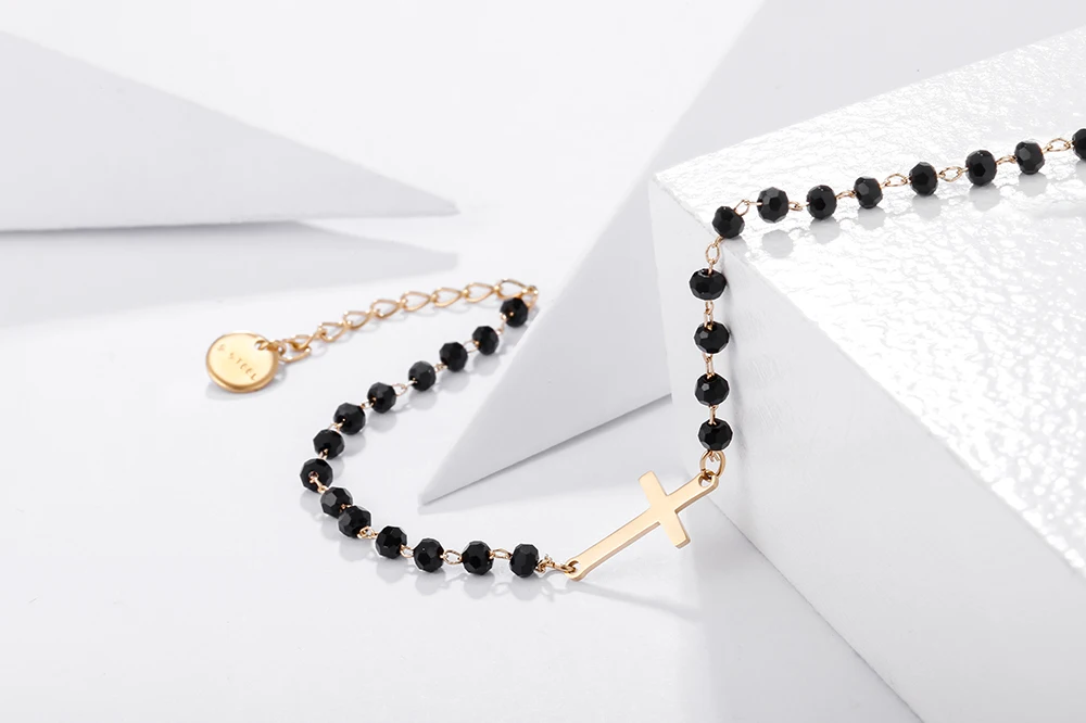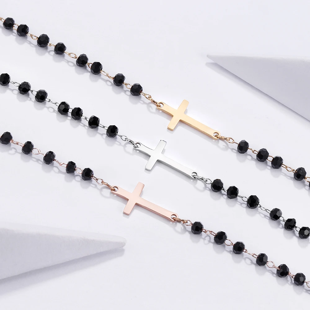Женский браслет из нержавеющей стали с черными кристаллами, браслет-цепочка с подвеской в виде креста, украшение на религиозную тему, Рождественский подарок с Иисусом, 2021
