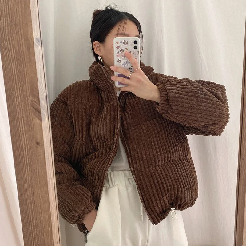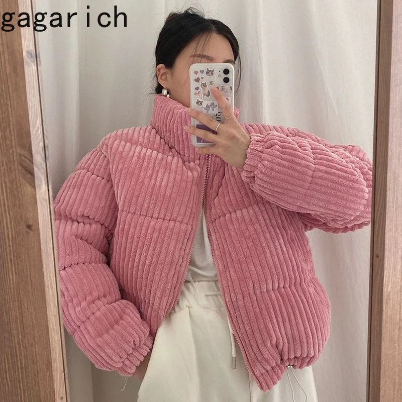 Gagarich женские парки корейский шикарный осенне-зимний Универсальный розовый воротник-стойка свободная полосатая Вельветовая хлопковая короткая куртка для женщин