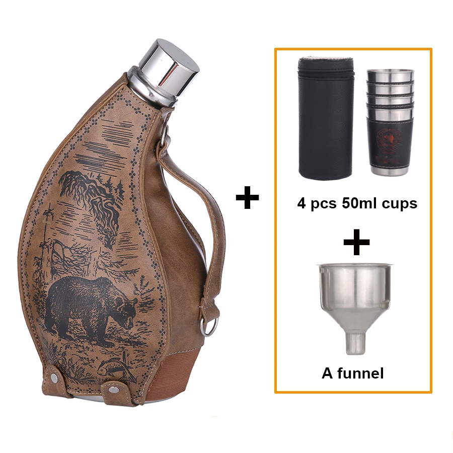 Фляжка из нержавеющей стали 53 унции 304 с рожками, фляжка для виски, водки, спиртовой Флагон для Menfolk, кожаный чехол, портативные флагоны для улицы