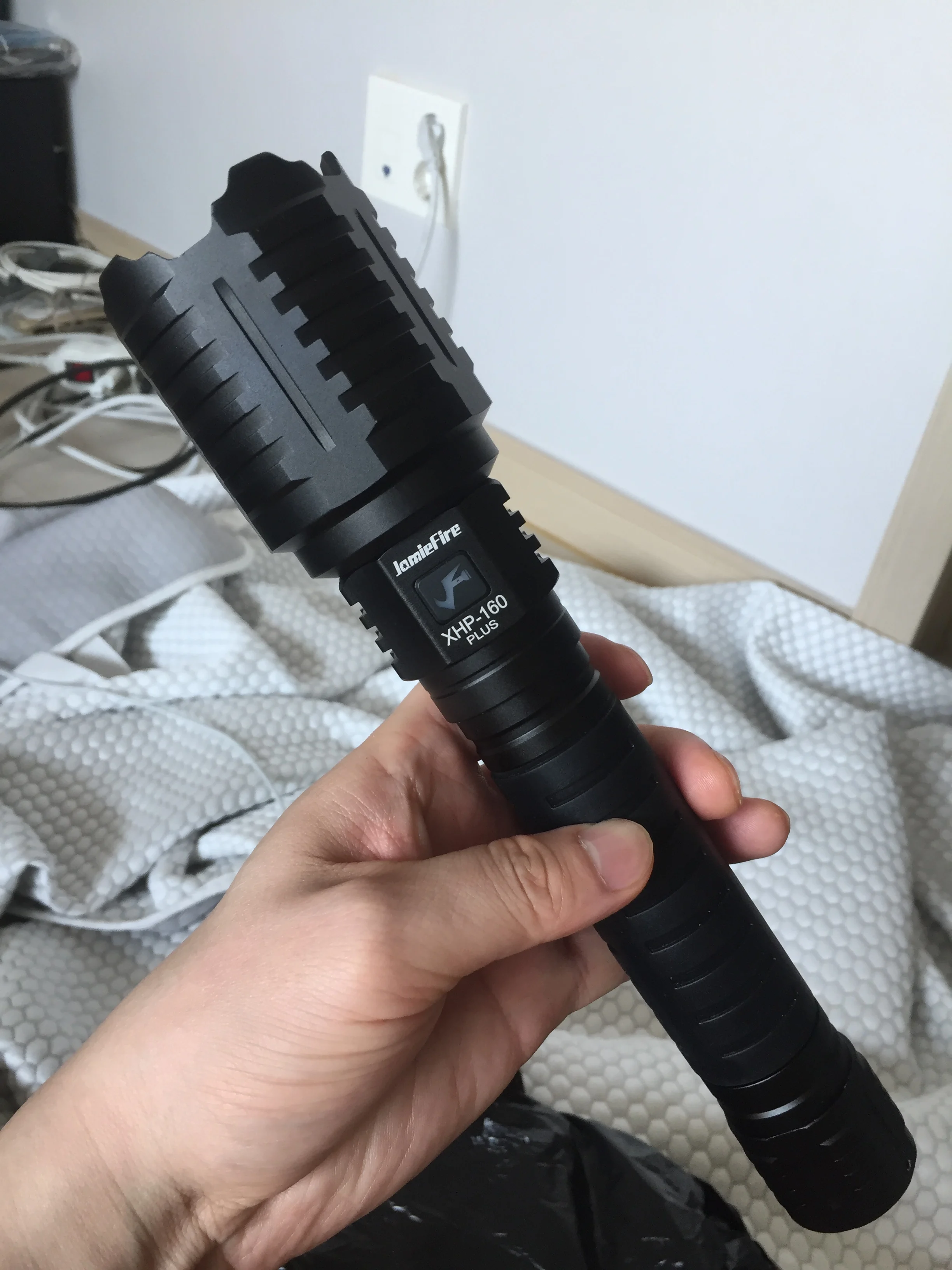 Great flashlight! I choose this one over other XHP160 flashlights, because it uses more standard 26650 cells, and all other use 21700. It is really bright, but not that much brighter than XHP90 that i also have. I mean it has 4 times bigger led, and it has colder tone of light, but it is not bright enough to make XHP90 not visible in its light. It is still better than my XHP90, because it has power bank option, and more light modes, that save energy. The only thing i do not like is lack of more precise power display, like 4 leds, not only green for good and red for bad. Summarizing - if you already have XHP90 and you are not tech freak who always needs newest inventions, then stick to what you already have. If you dont have strong flashlight and you want one - that could be best choice for that moment. Note that XHP160 light is very cold, almost blue like xenon car lights if that matter for you. I'll try to add some pictures for show and comparison.