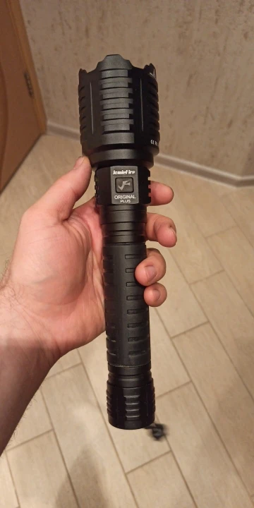 Фонарь шикарен!!! Конечно много положительных отзывов, но это всего лишь отзывы... И немного смущала относительно высокая цена, пока я не взял его в руки.... Он просто супер. Массивный, удобный, а светит так, что надо челюсть подвязывать (чтоб об пол не разбить ))) ) Доставка так же порадовала. В Воронеж за 10 дней с учетом майских праздников. Всем рекомендую, не пожалеете!!! З.Ы. Есть там маленький косячок: силиконовая крышка на пробойнике не держится, сползает. Снял её вообще.