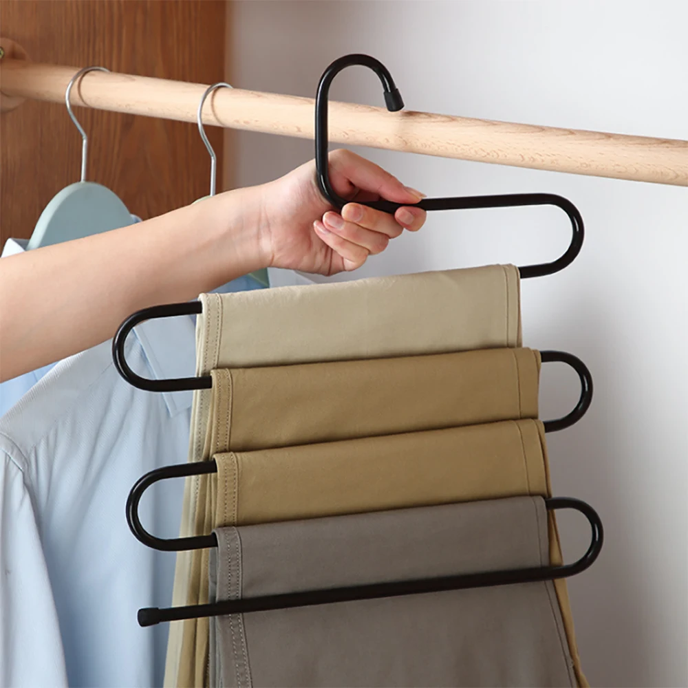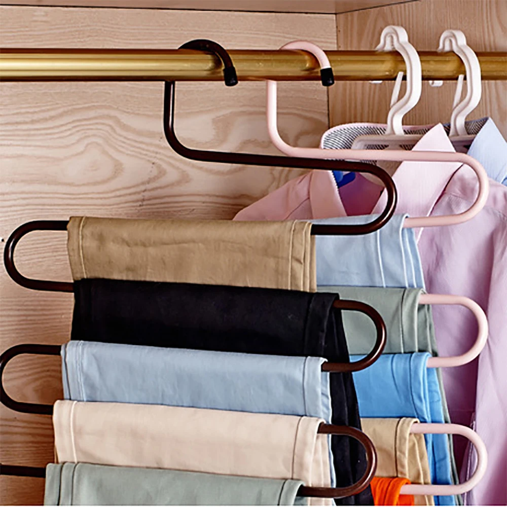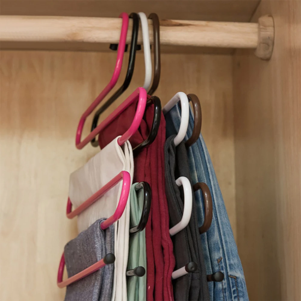 Многофункциональные вешалки для одежды, железная, 5 слоев, S-образная вешалка для хранения штанов, стеллаж для хранения одежды