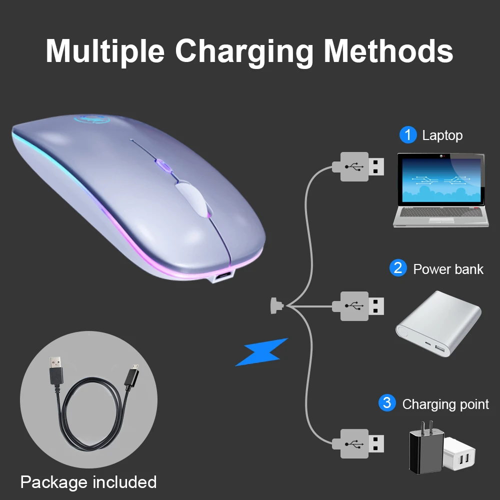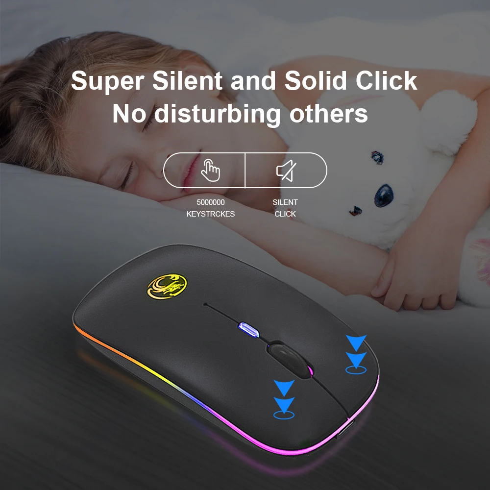 Беспроводная компьютерная мышь RGB, бесшумная компьютерная мышь, перезаряжаемая эргономичная мышь со светодиодный Ной подсветкой, оптическая USB-мышь для ПК, ноутбука