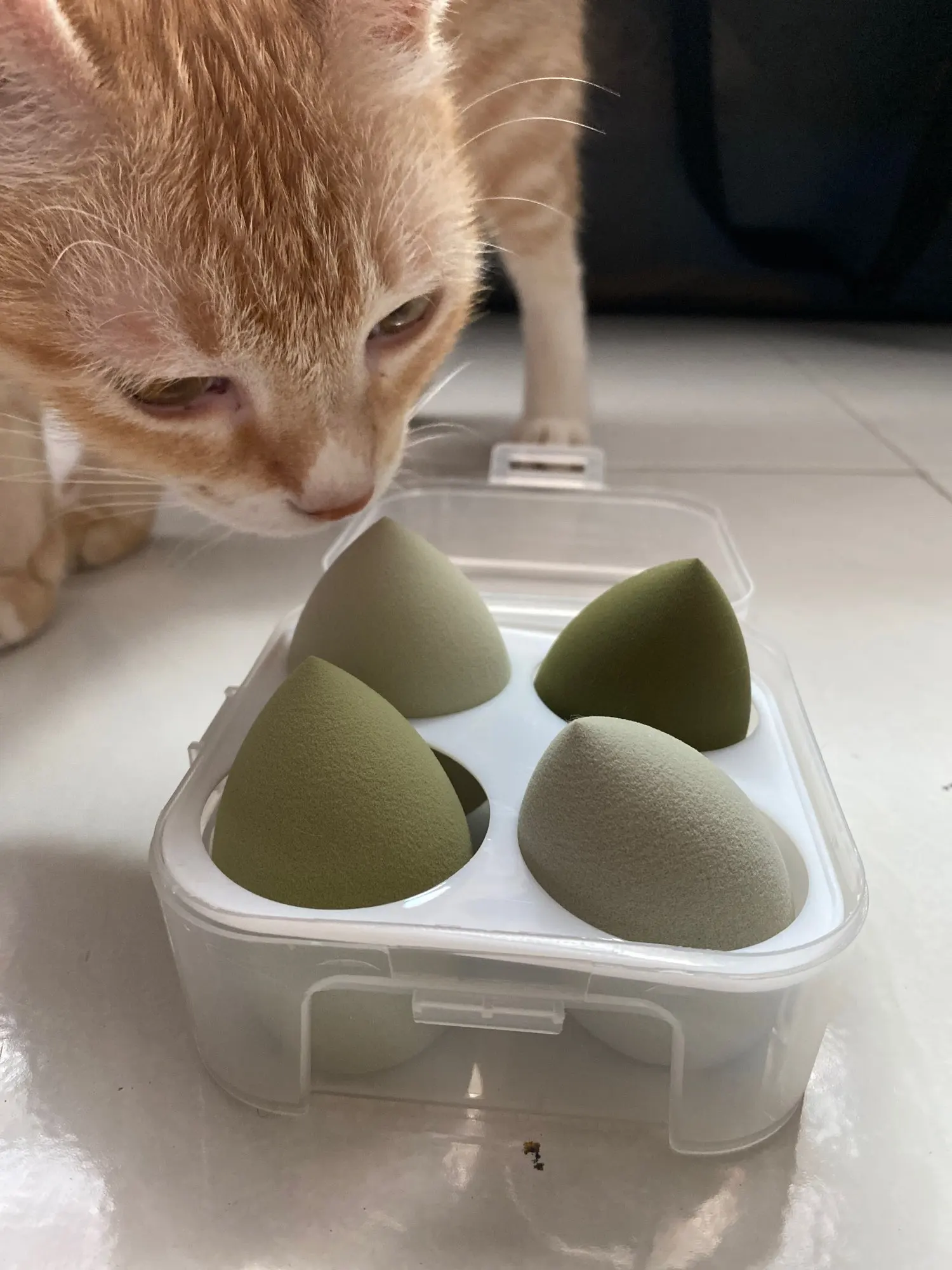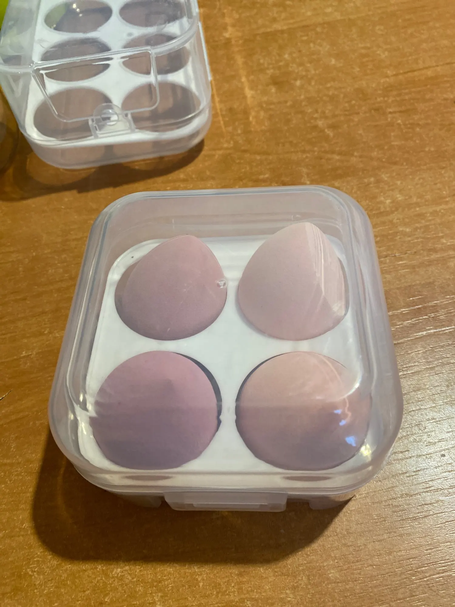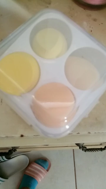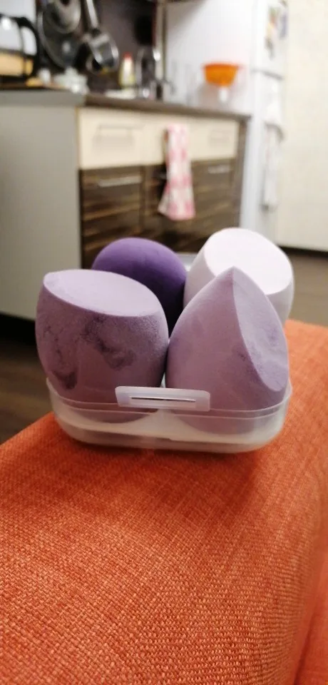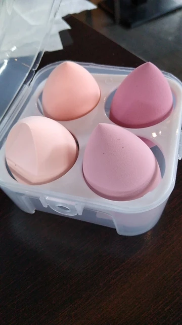 спонжи очень хорошие. увеличиваются от воды. очень мягкие, наносят тон отлично. прекрасно отмываются от тонального крема.