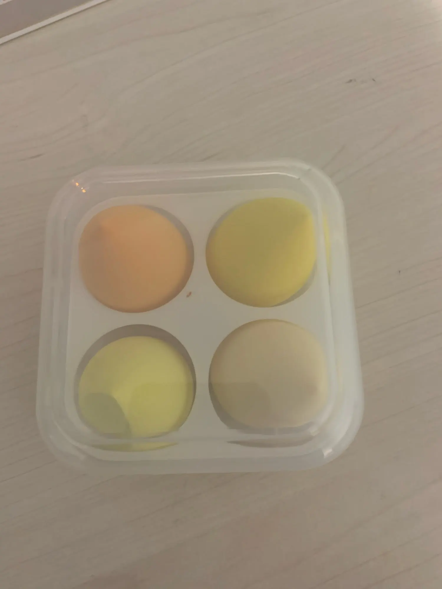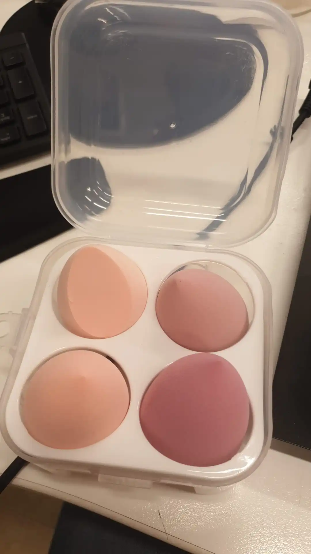 Wszystko jak na zdjęciu. Fajne pudełko. Gąbki wydają się dobrej jakości, ale jeszcze nie używałam. Przesyłka doszła szybko. Jestem zadowolona