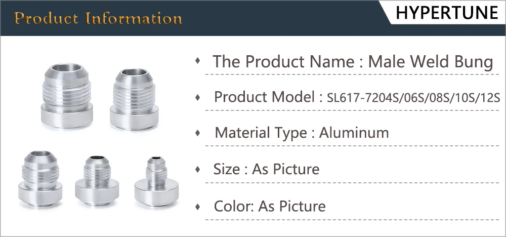 Размер резьбы: 4/6/8/10/12 AN MaleЦвет: серебристыйИзготовлен из высококачественного алюминия.Посылка включает в себя: