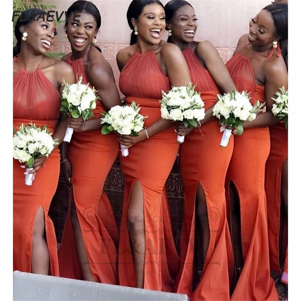 2021 коралловый Южная платье подружки невесты из Африканской Ткани в стиле Русалочки с бретелями, завязывающимися на черный Платье подружки невесты для девочек Разделение сбоку Свадебная вечеринка платья