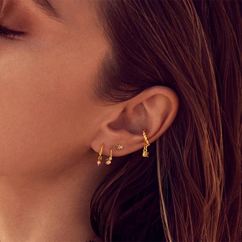 Серьги-кольца женские золотистые из серебра 925 пробы с цирконием