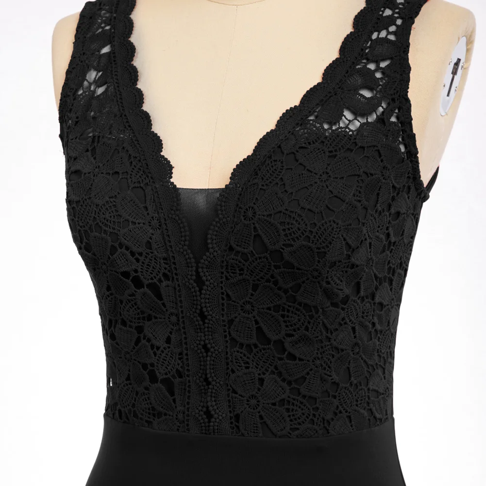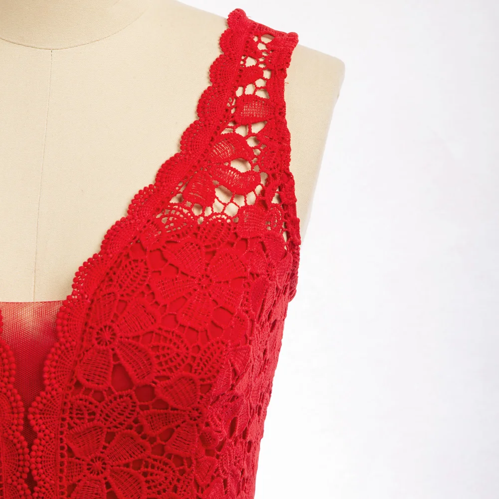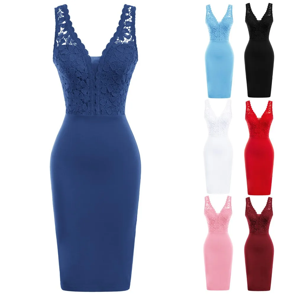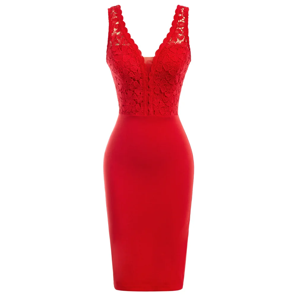 Женское кружевное платье-карандаш с V-образным вырезом, без рукавов