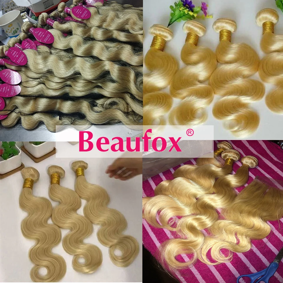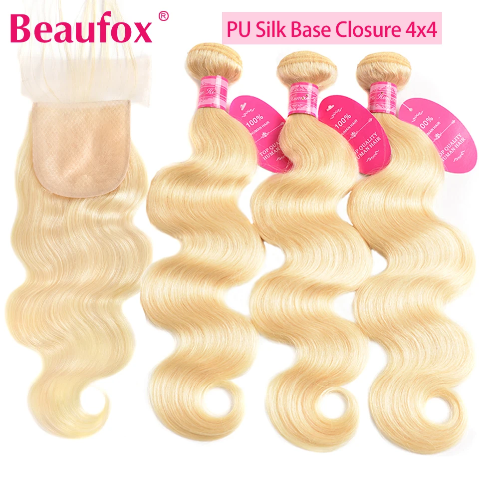 Beaufox 613 светлые пряди с закрытием бразильские волнистые 3 пряди с закрытием светлые человеческие пряди с закрытием Remy