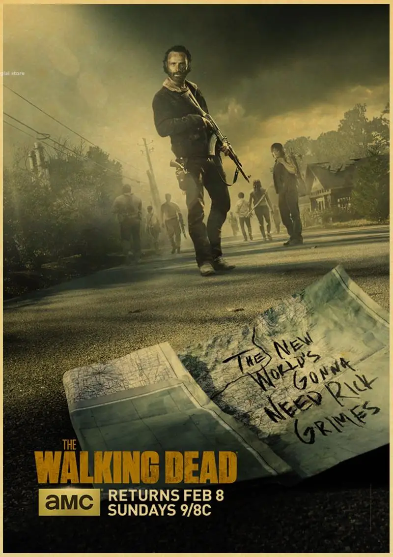 Фильм "Ходячие мертвецы" ретро крафт-бумага плакат Бар Офис кафе домашнее Искусство Наклейка на стену украшение
